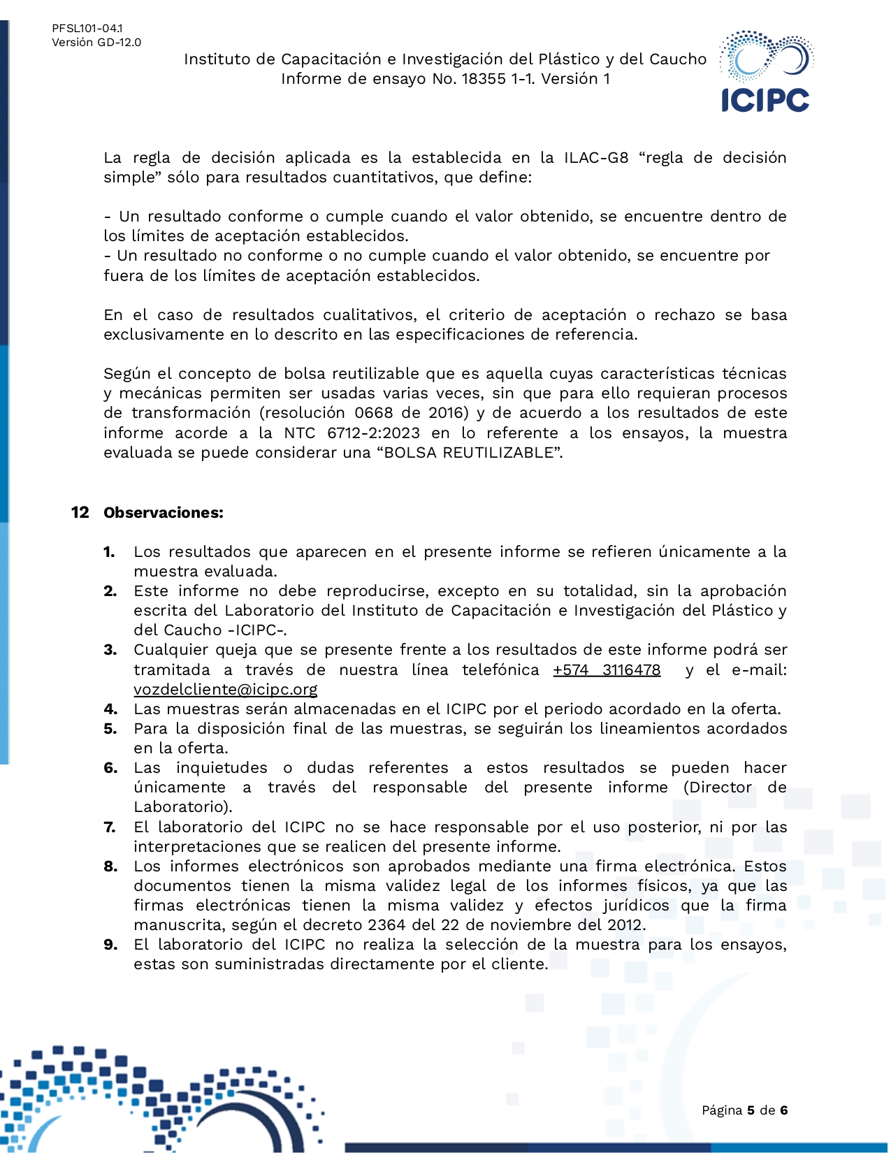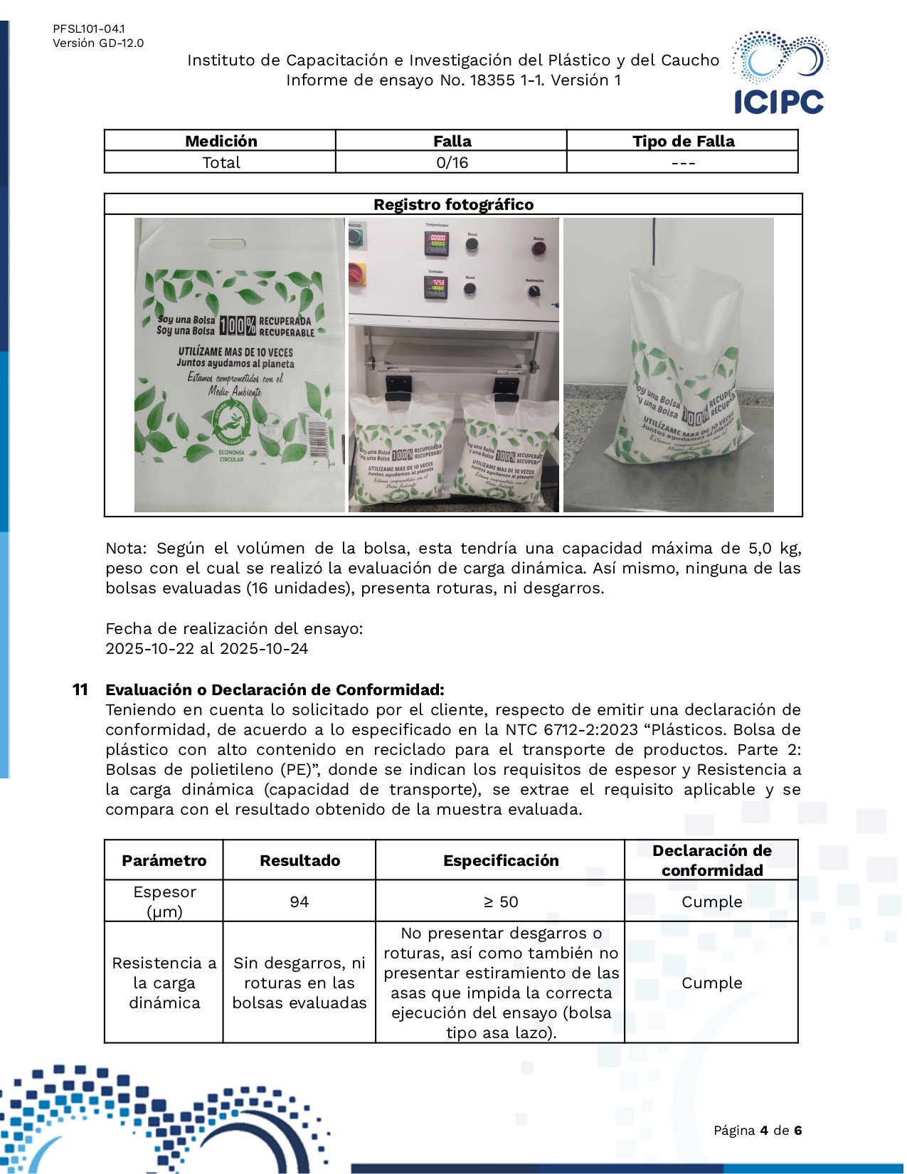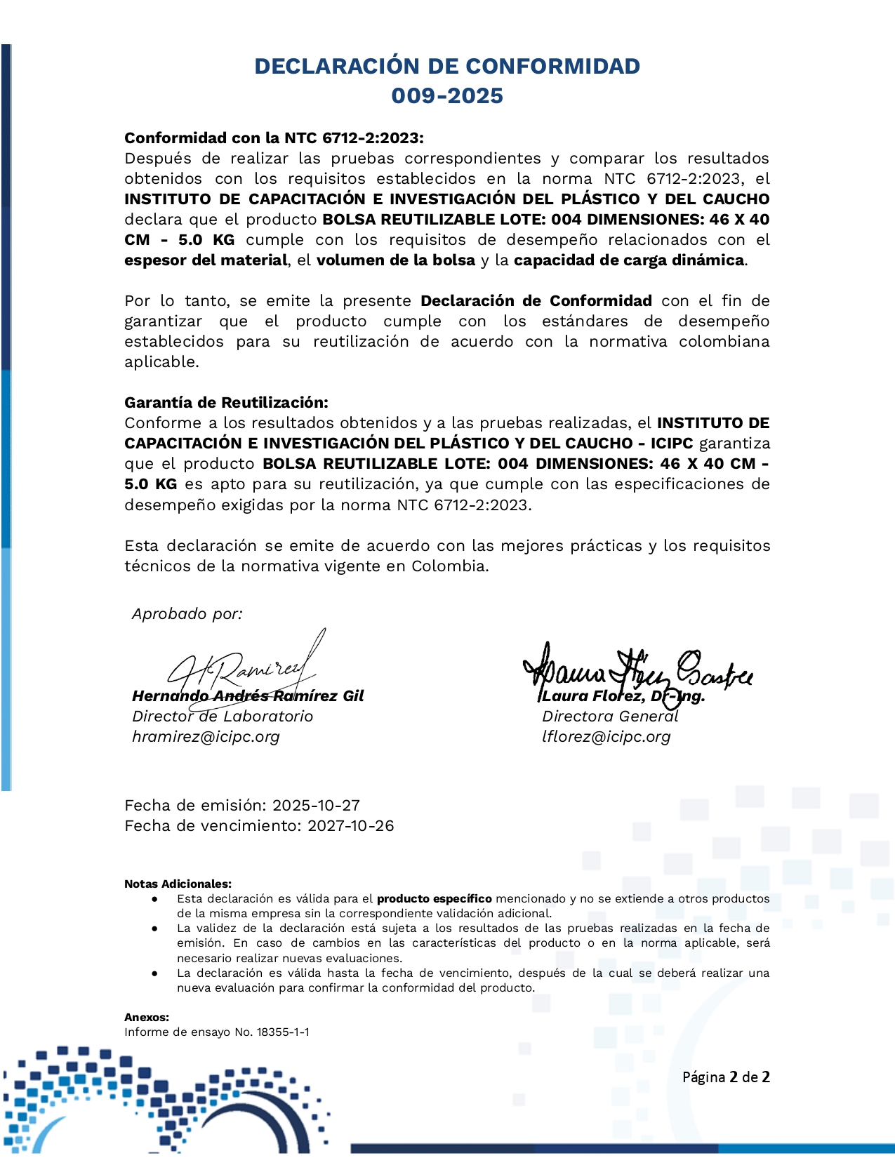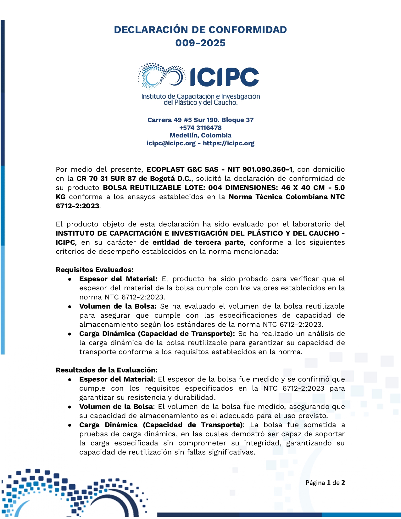 Declaración de conformidad de su producto BOLSA REUTILIZABLE